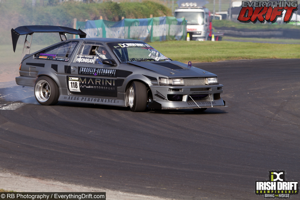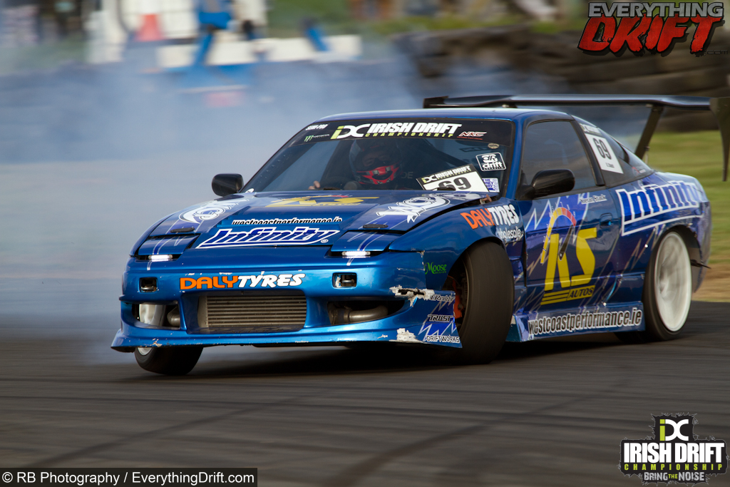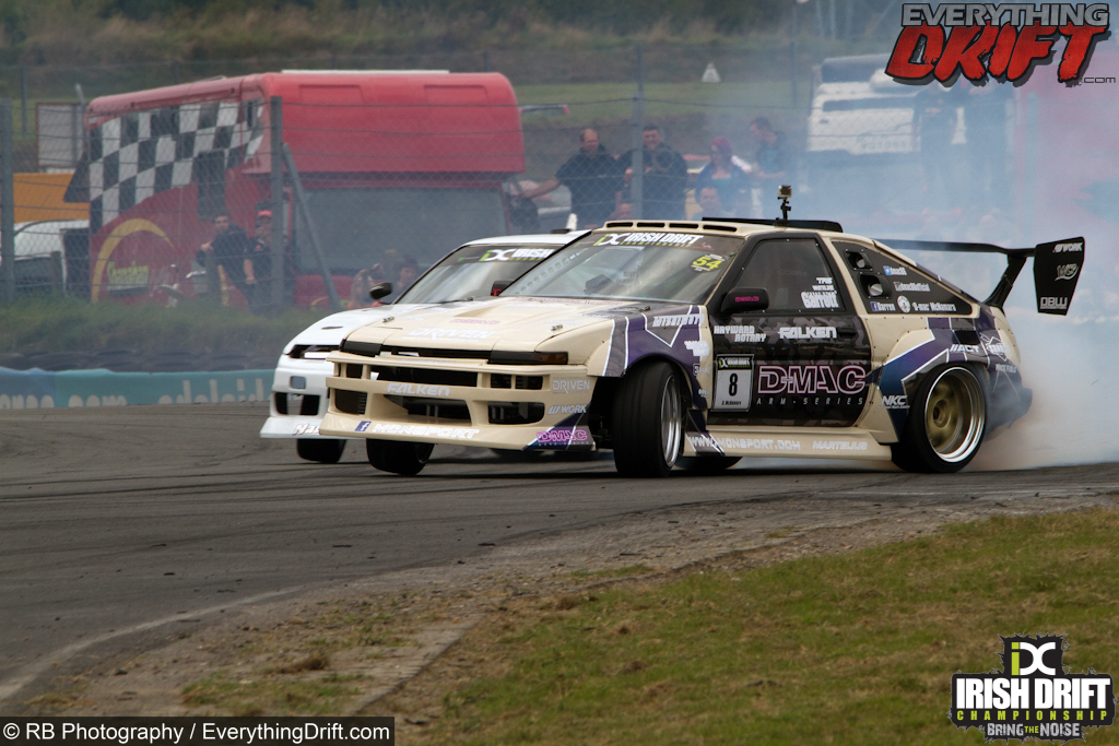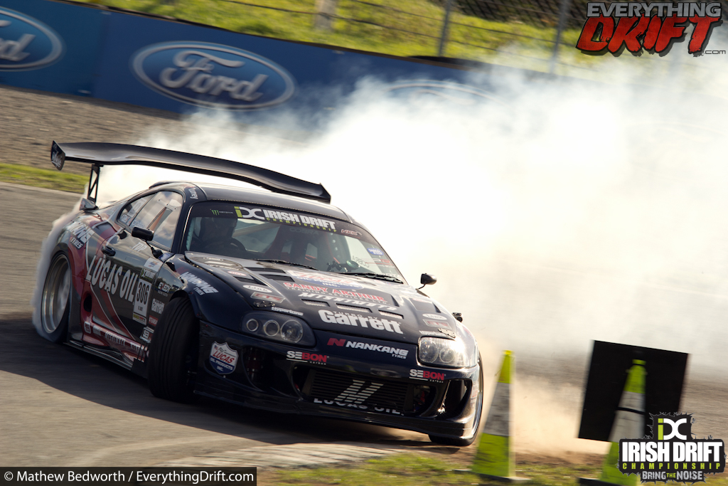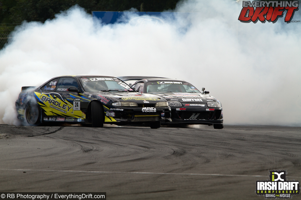 Round 5 marked 10 years of competitive drifting in Ireland, during which they have never been beaten. The Irish Drift Championship set a target on their own backs and invited some of the best drivers from around the world to take part, retaining that streak would mean beating drivers such as Chris Forsberg, Matt Carter, Phil Morrison. They had their own share of drivers with Darren ‘D-mac’ McNamara, Dean ‘Karnage’ Kearney, Jack Shanahan and James Deane, all aiming to take the top spot on the podium.