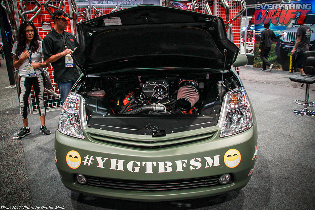 On to the baddest Prius on the planet, now before you bring your pitch fork mob after me, hold up, this is a rear-wheel drive Mopar Hellcat supercharged monstrocity which was built for tearing up drag strips. DAMN!