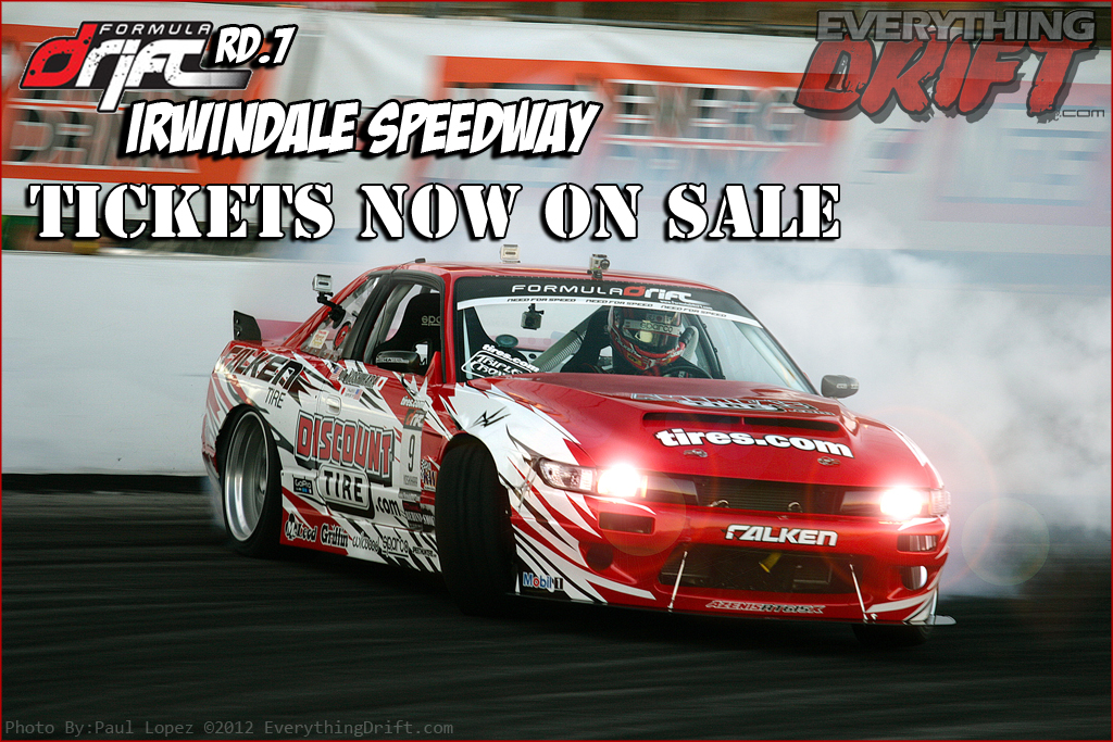 Long Beach, Calif. August 15, 2012 Tickets for the finale event of the 2012 Formula DRIFT season are on-sale now. Round 7: Title Fight on October 12-13, 2012 will be held at Irwindale Speedway.