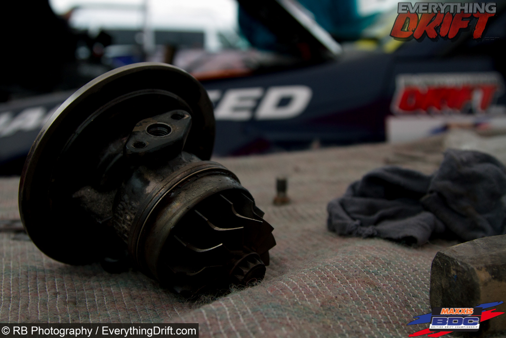 The team now reinvestigated the turbo issue with the damaged clearly visible the decision was made to try and get a repair that night so the search began to find a local turbo specialist. After searching the web Ollie and Team Principal Martin Moore headed off to Paisley with turbo hoping to arrive back at track with a solution to the problem and after a very long night and the excellent work of Turboz UK both arrived back at 5 a.m. exhausted.